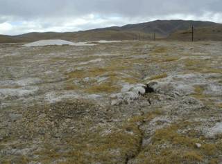 在2011年6月初至8月初,在黑河干流源头西支开展多年冻土调查。沿二尕公路热水大坂垭口至石棉矿岔口之间路段,随着海拔高度的降低,依次布设测温孔T1、T2、T3、T4、T7、T5和T6等共7眼,并布设测温管进行地温监测。所用仪器为中国科学院寒区旱区环境与工程研究所冻土工程国家重点实验室研制的热敏电阻温度计,用...