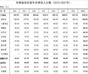 甘肃省各区县社会经济状况统计数据(2010-2021年)
