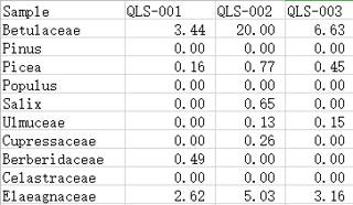 内蒙古额济纳旗嘎顺诺尔湖泊剖面深度为200cm,样品分析间隔分别是2cm和8cm.孢粉组合是将出现率低、含量较少的科属进行合并,并将花粉按乔木、灌木、草本及农作物进行分类组合。 分别包含4个表: (1)湖泊剖面孢粉原始数据 (2)湖泊剖面百分比含量数据</p...